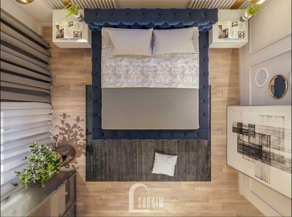 Thiết kế nội thất phòng ngủ được chăm chút tỉ mỉ với không gian nghỉ ngơi thư giãn, thoải mái. Các đường nét phố hợp hài hòa với màu sắc mang đến không gian phòng ngủ hiện đại.