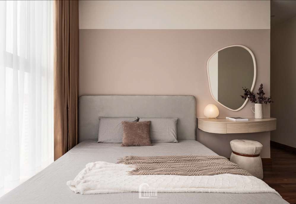 Sử dụng gam màu tự nhiên, như trắng, xám, và các tone màu nhạt như hồng phấn, nhẹ nhàng. Màu sắc tinh tế này giúp tạo cảm giác trầm lắng và gần gũi.