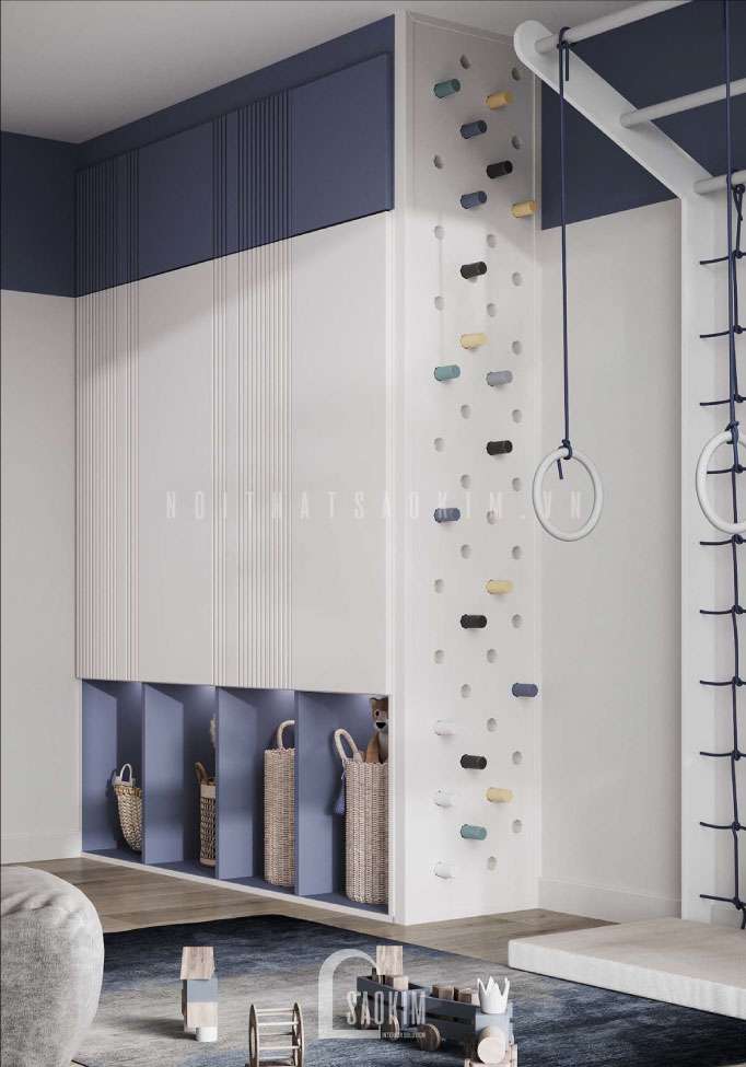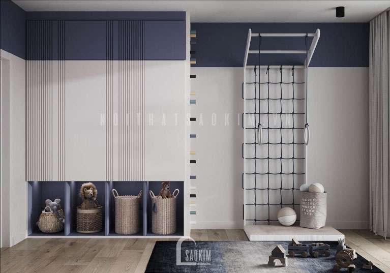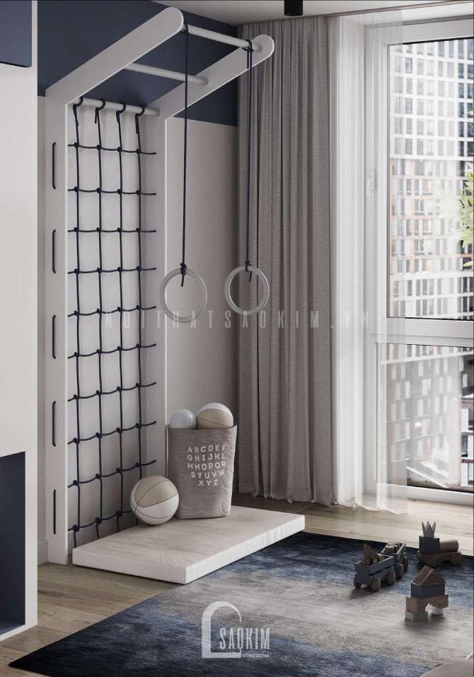 Ngày nay, điều kiện sống ngày càng phát triển, vì thế mà các bậc cha mẹ luôn cố gắng để dành cho con những điều kiện tốt nhất. Mẫu thiết kế phòng ngủ bé trai được kết hợp giữa màu sắc xanh dương biển cả với nội thất tiện nghi mang đến không gian năng động, khỏe khoắn cho bé. Việc thiết kế phòng ngủ cho bé trai là điều khiến nhiều bố mẹ băn khoăn bởi đây không chỉ là không gian ngủ mà nó còn là không gian học tập, vui chơi mà bé sẽ gắn bó lâu dài đến khi trưởng thành. Dưới đây là thiết kế phòng ngủ cho bé mà nội thất Sao Kim đã thực hiện tại chung cư The Matrix One.