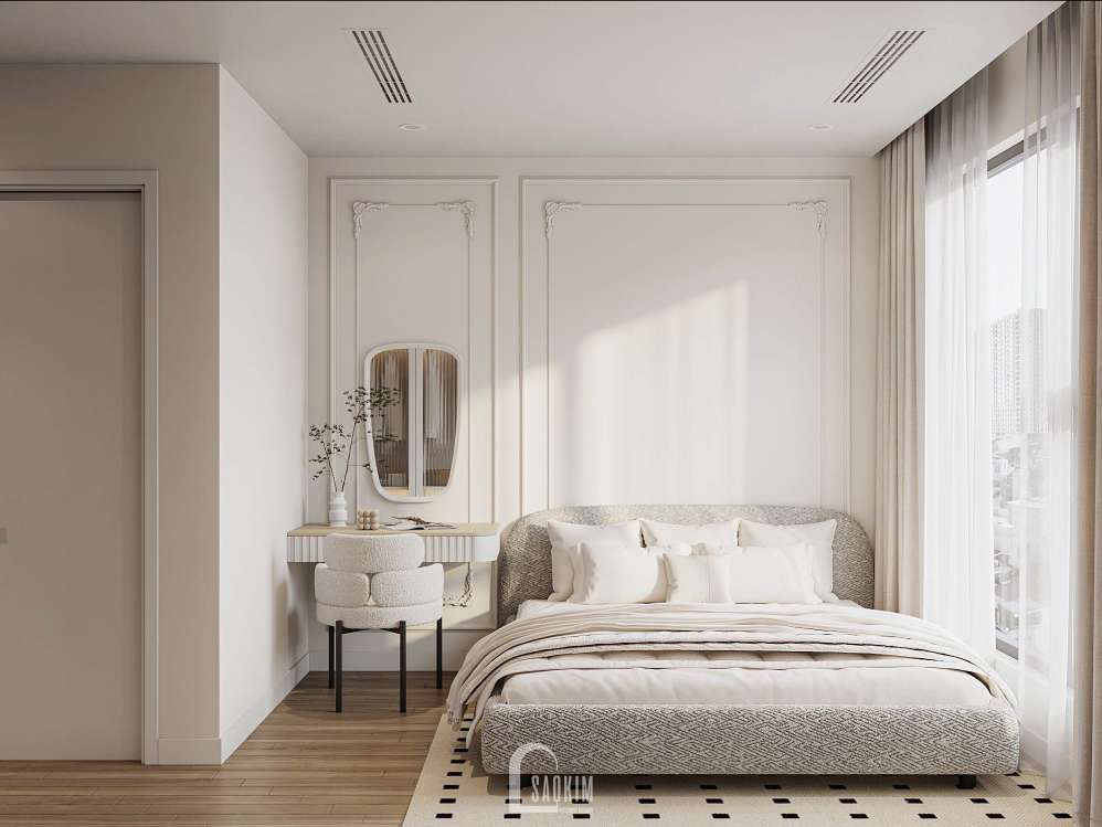 Bảng màu chủ đạo của phong cách Parisian bao gồm các gam trung tính như trắng, be, xám và xanh nhạt. Những chất liệu tự nhiên như da, vải cotton, thảm len cũng là phụ kiện trang trí tuyệt vời, mang lại cảm giác ấm cúng và sang trọng cho không gian. Bên cạnh đó, các màu sắc đậm hơn như vàng, hồng phấn và xám xanh, với nhiều sắc độ khác nhau, được sử dụng khéo léo để tạo điểm nhấn tinh tế cho căn phòng.
