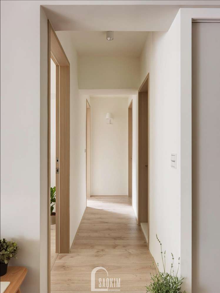 Hành lang đi lại trong thiết kế căn hộ chung cư phong cách Muji.