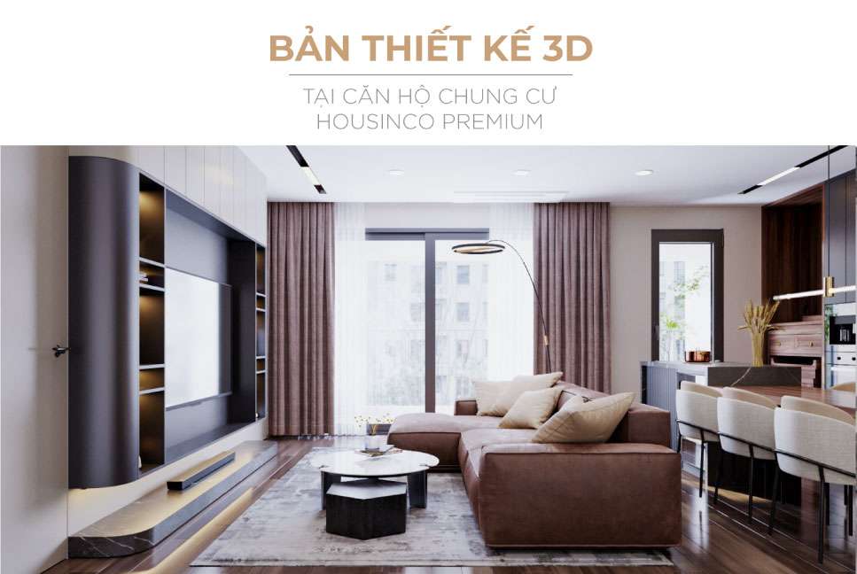Thiết kế nội thất phòng khách trong căn hộ chung cư Housinco premium