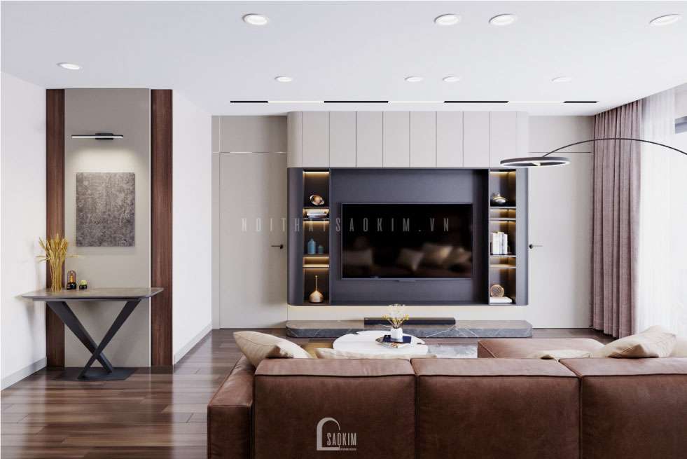 Không gian phòng khách- không gian sinh hoạt chung của cả gia đình và là nơi đón tiếp bạn bè, khách quý. Vì thế, thiết kế nội thất căn hộ phòng khách cần thể hiện được sự sang trọng, hiện đại, thể hiện được cái tôi, cá tính riêng của gia chủ.
