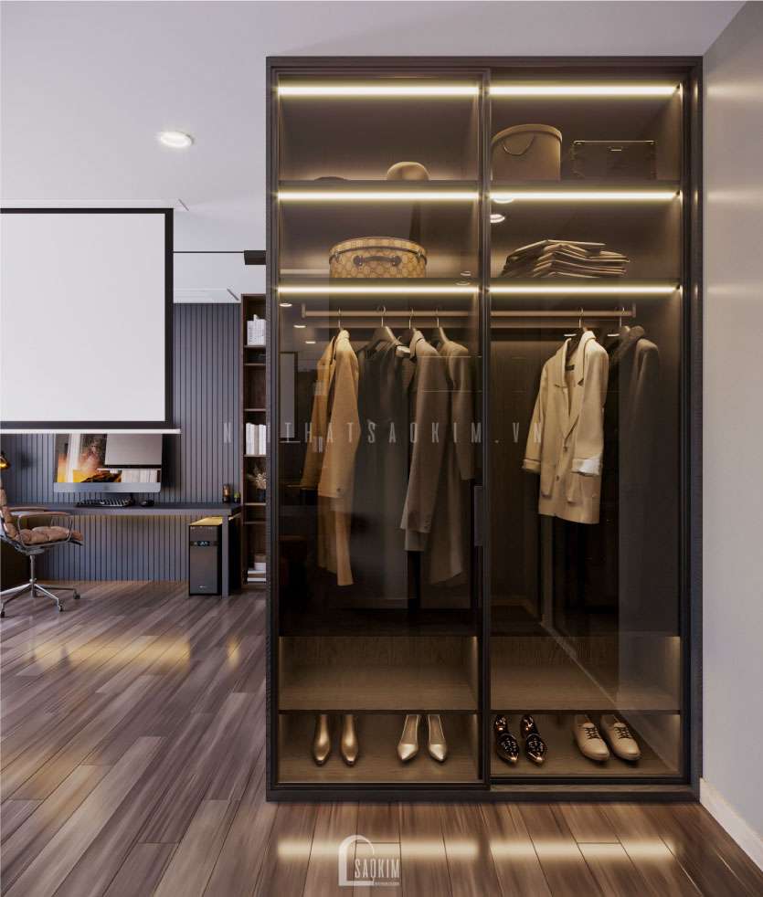 Thiết kế không gian để tủ quần áo tiết kiệm diện tích, tủ kính trong sang trọng đang là xu hướng mà nhiều gia chủ ưa chuộng và lựa chọn.
