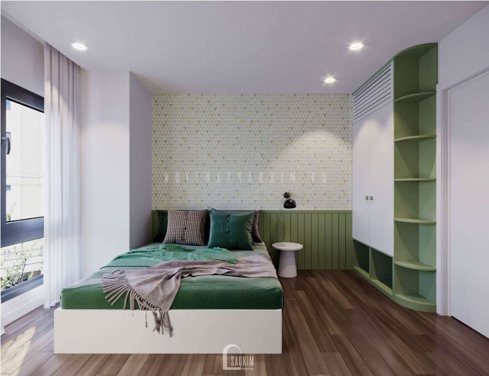 Không gian phòng ngủ được bố trí hợp lí, tiết kiệm diện tích