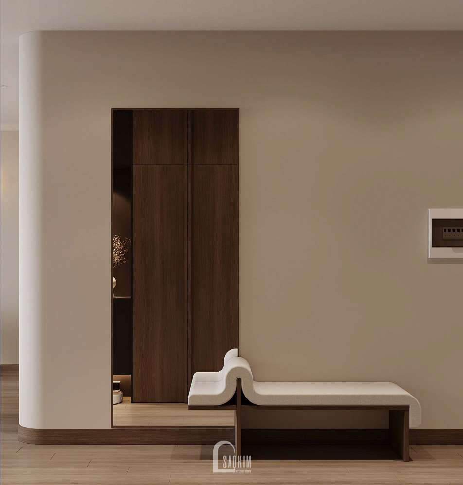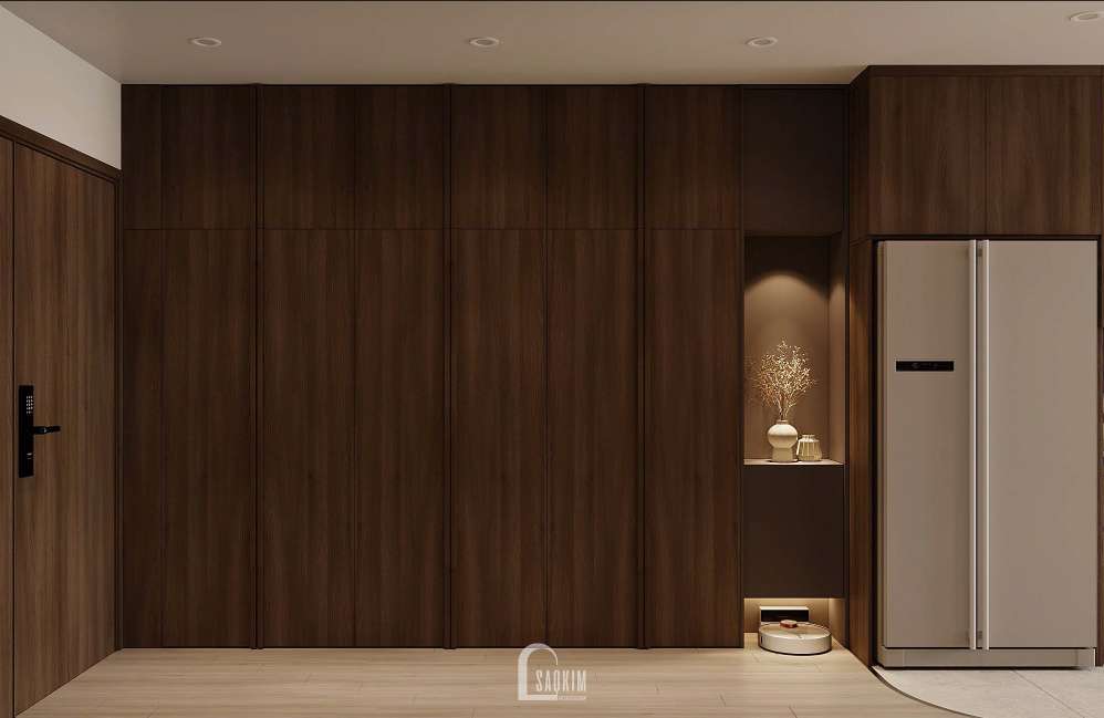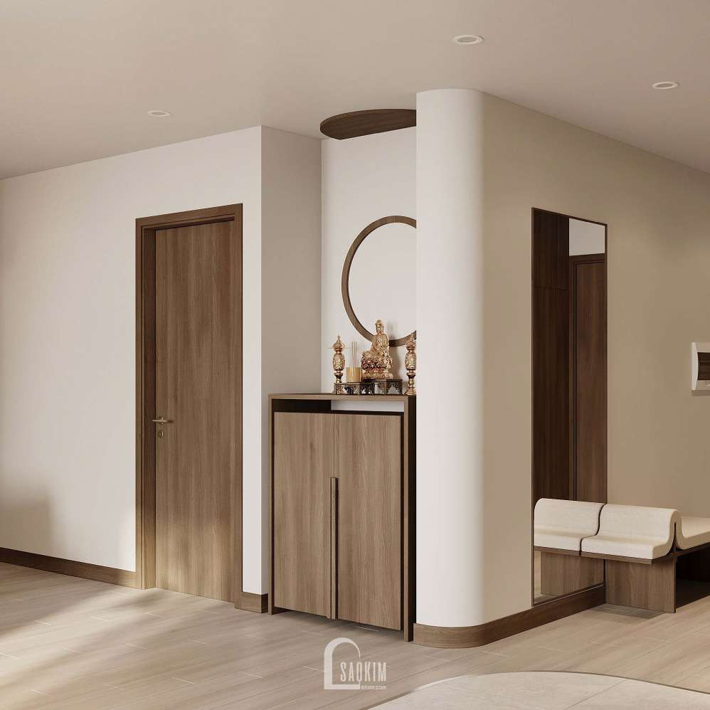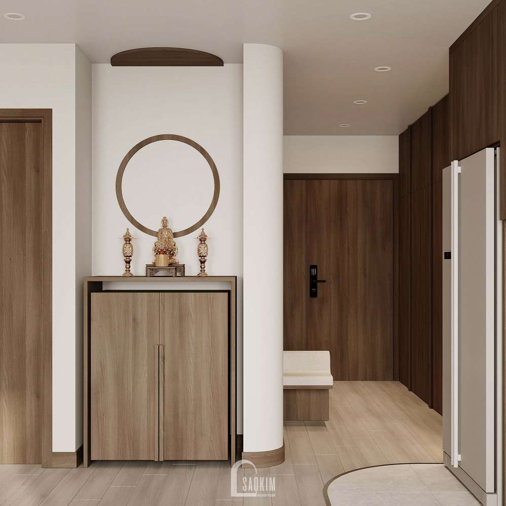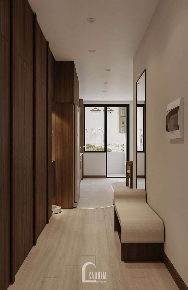 Lối ra vào, hành lang trong thiết kế nội thất căn hộ ba phong ngủ.