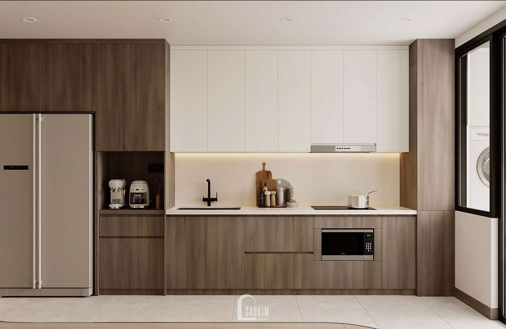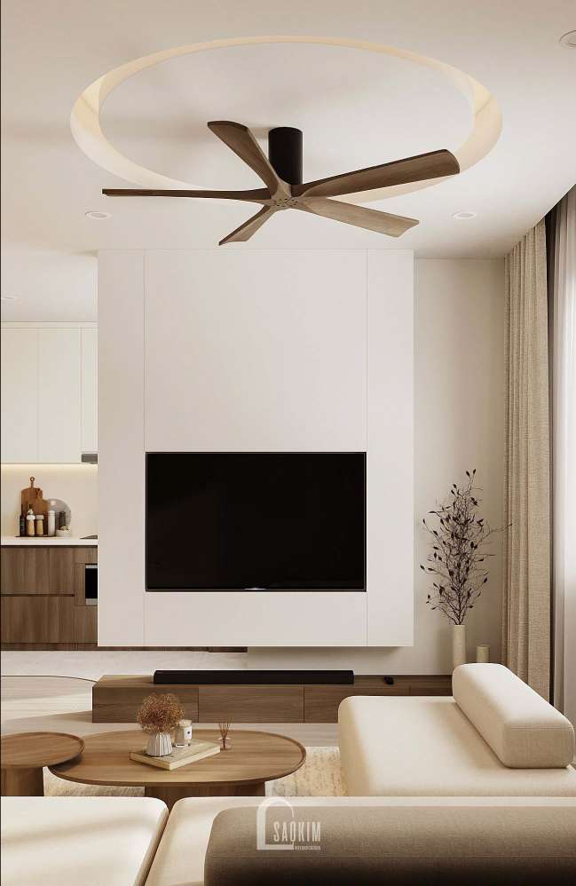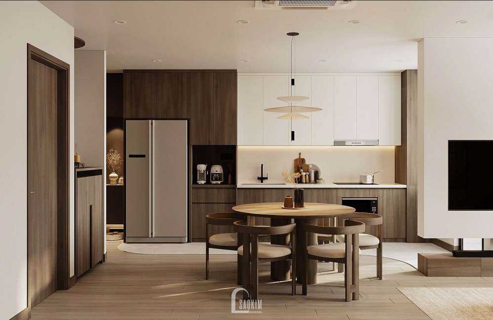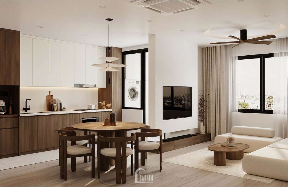 Thiết kế nội thất phòng khách- phòng bếp phong cách Japandi ba phòng ngủ dự án Đốc Ngữ Residence