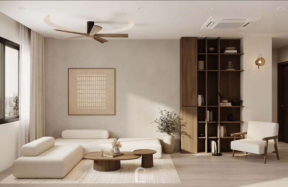 Thiết kế nội thất phòng khách phong cách Japandi ba phòng ngủ dự án Đốc Ngữ Residence