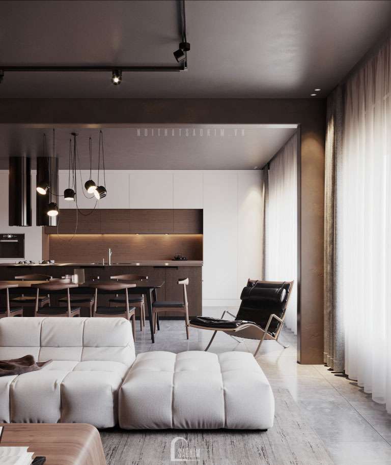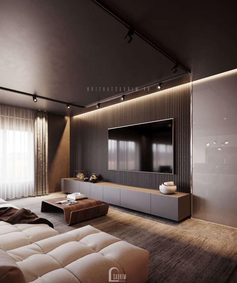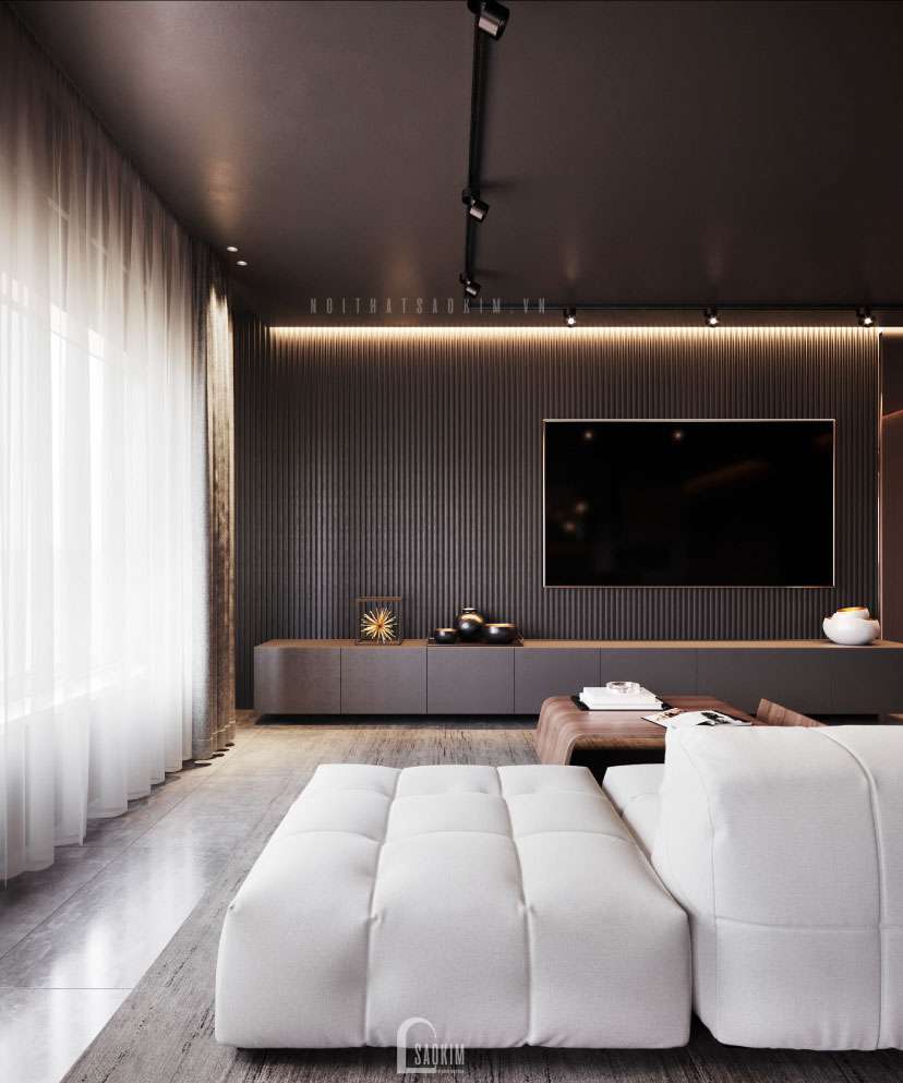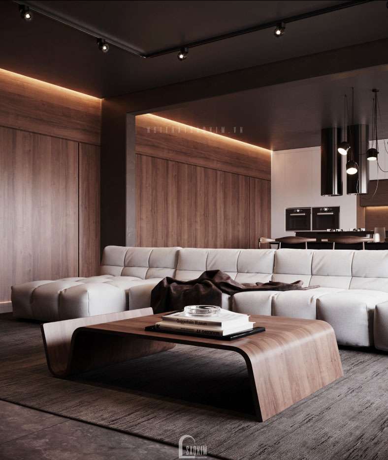 Bên cạnh đó, bố trí hệ thống đèn trong thiết kế căn hộ Penhouse hiện đại để cung cấp đầy đủ ánh sáng cho căn phòng giúp không gian không quá tối tránh cảm giác ngột ngạt, khó chịu cho những giây phút thư giãn của gia đình cũng như khách đến chơi nhà.