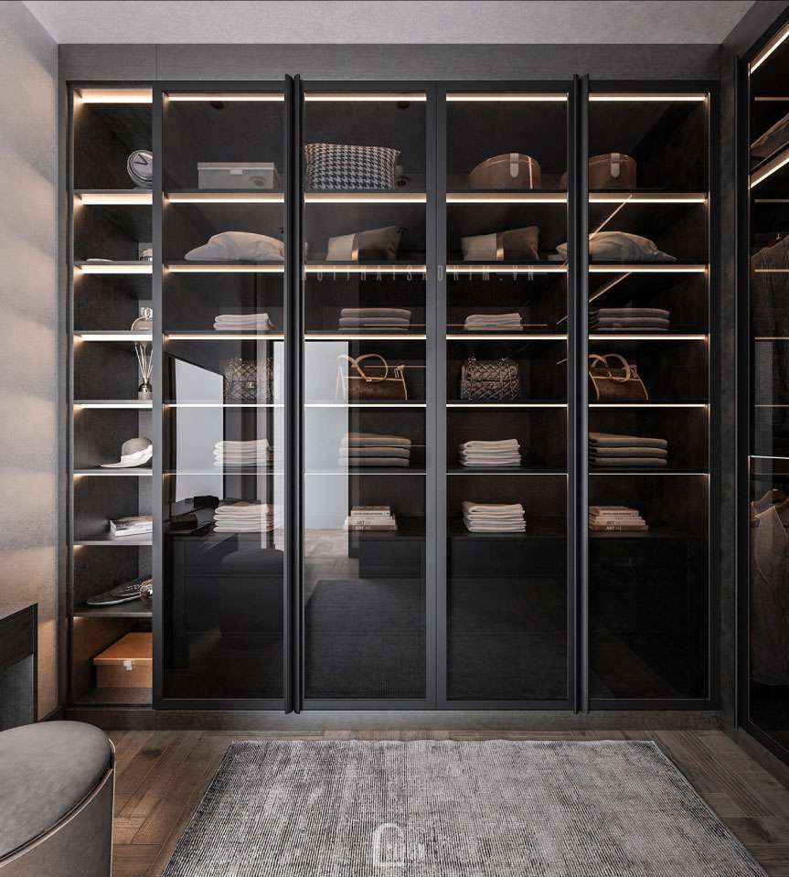 Tủ để đồ túi xách, quần áo được thiết kế rộng rãi, sang trọng