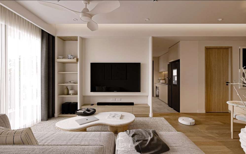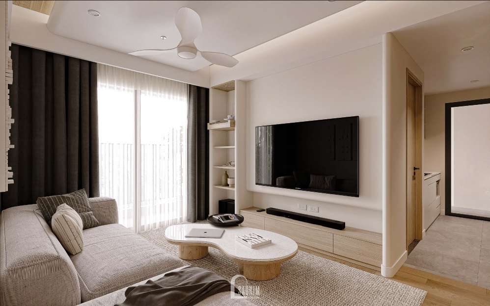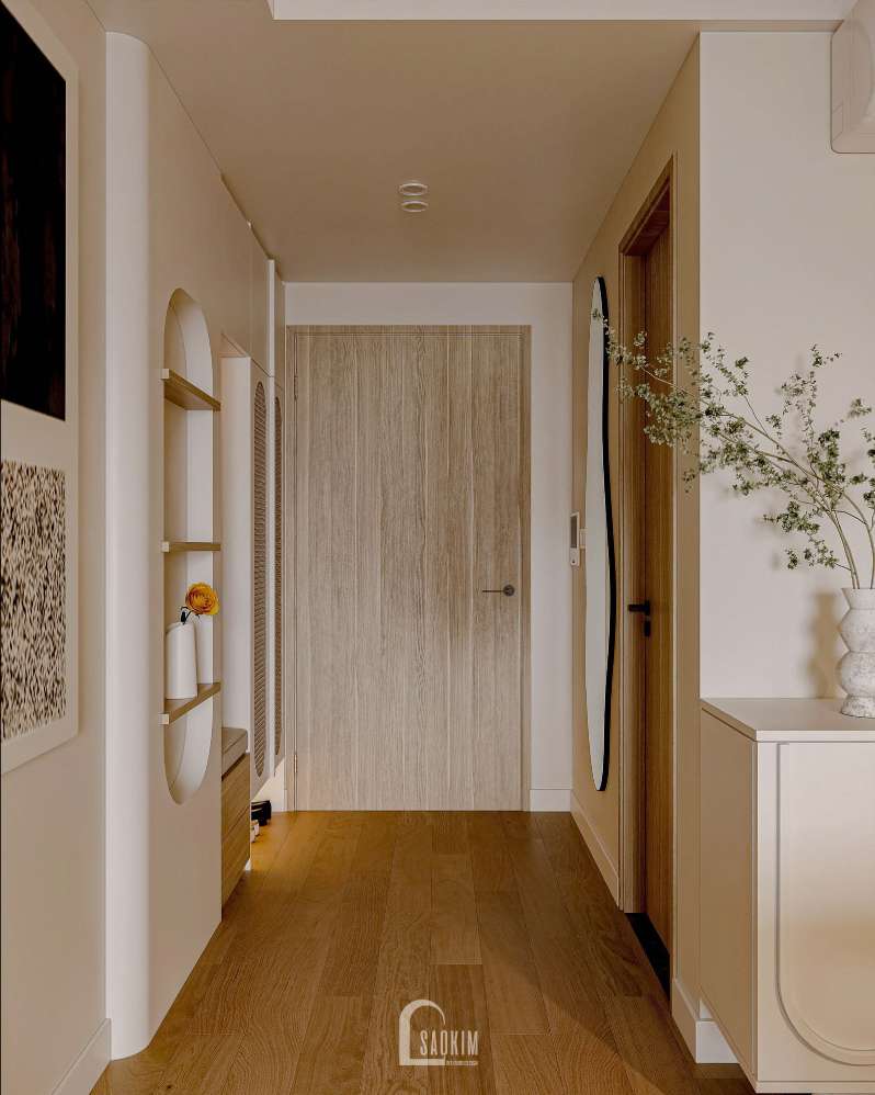 Thiết kế nội thất chung cư trong phong cách này sử dụng các vật liệu tự nhiên như gỗ, đá và kim loại. Những vật liệu này thêm sự ấm áp và tính tự nhiên vào không gian, tạo điểm cân bằng với tính tối giản của phong cách.