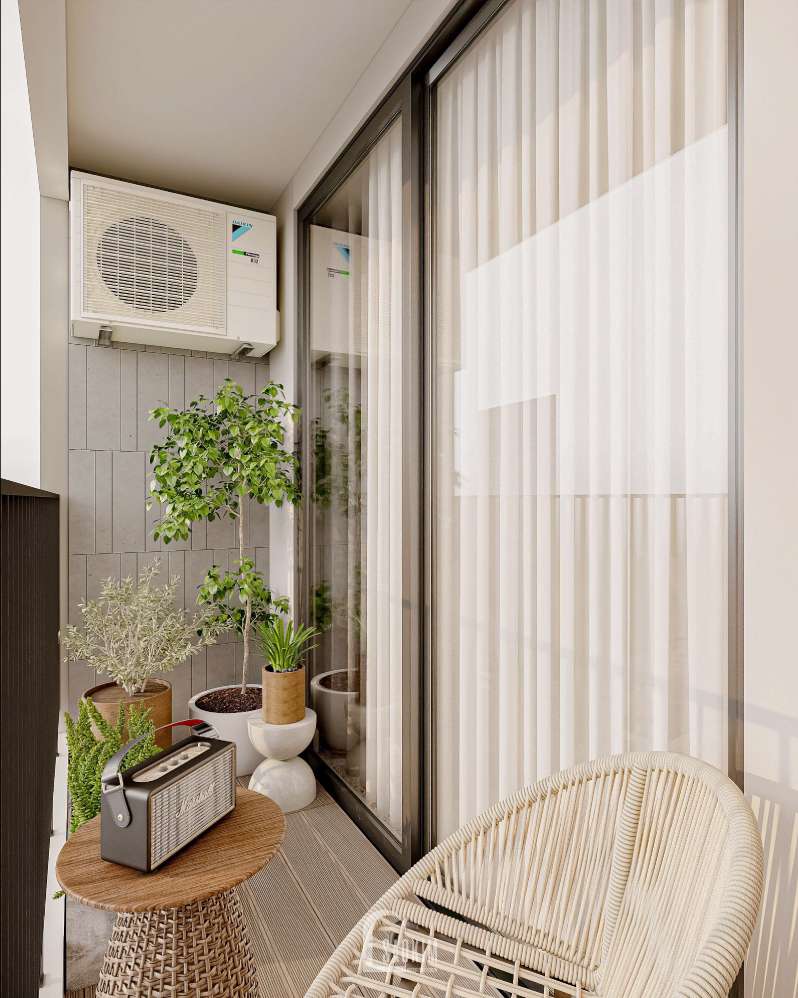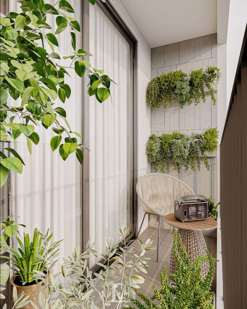 Tận dụng ánh sáng tự nhiên từ cửa sổ lớn và màn trắng để tạo ra một không gian sáng sủa và mở.