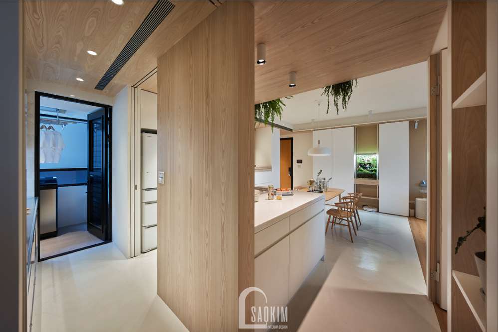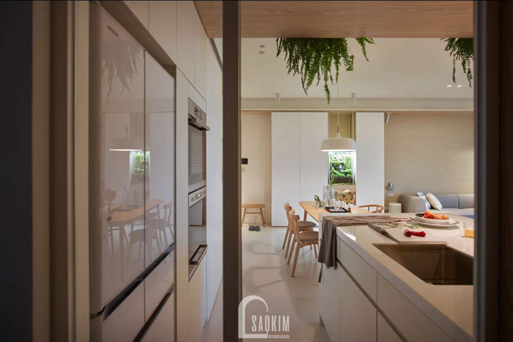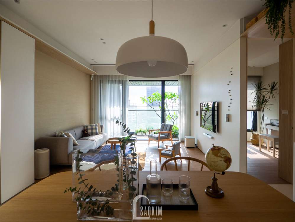 Sự kết hợp bởi các gam màu và đồ gỗ không chỉ tạo ra cảm giác thoáng đãng mà còn làm tôn lên vẻ đẹp tự nhiên của các vật liệu.