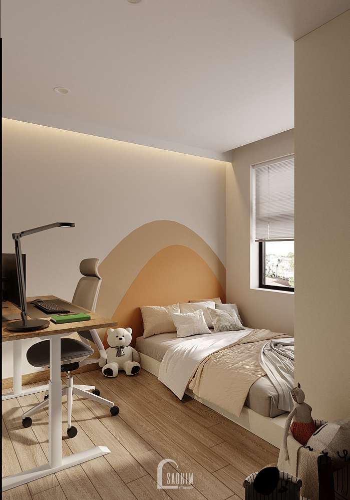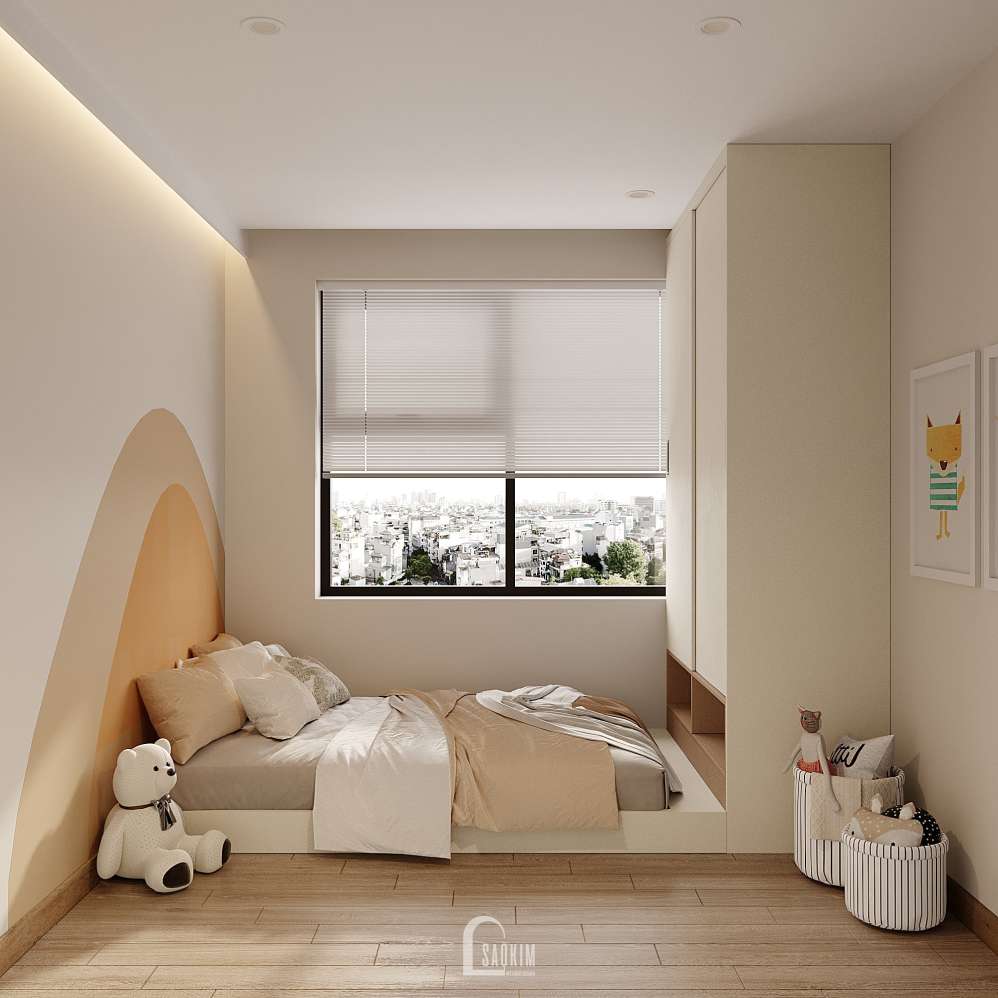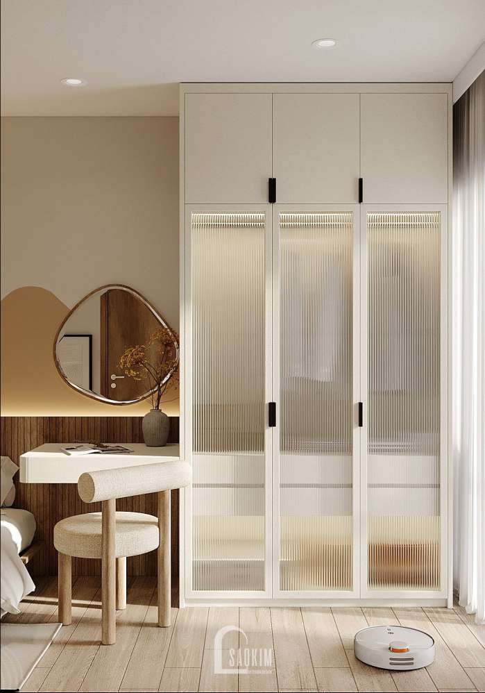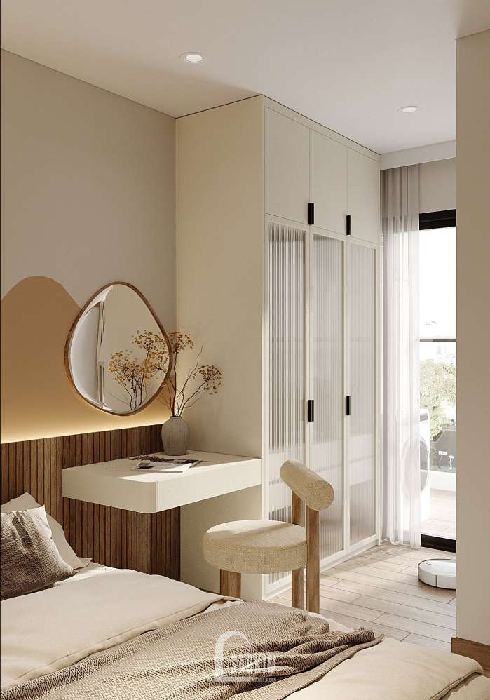 KTS Nội thất Sao Kim thiết kế phòng ngủ phong cách Wabi Sabi kết hợp từ màu sắc đến nội thất mang đến một không gian tĩnh lặng, yên bình và tràn ngập sự ấm áp.