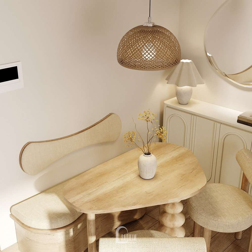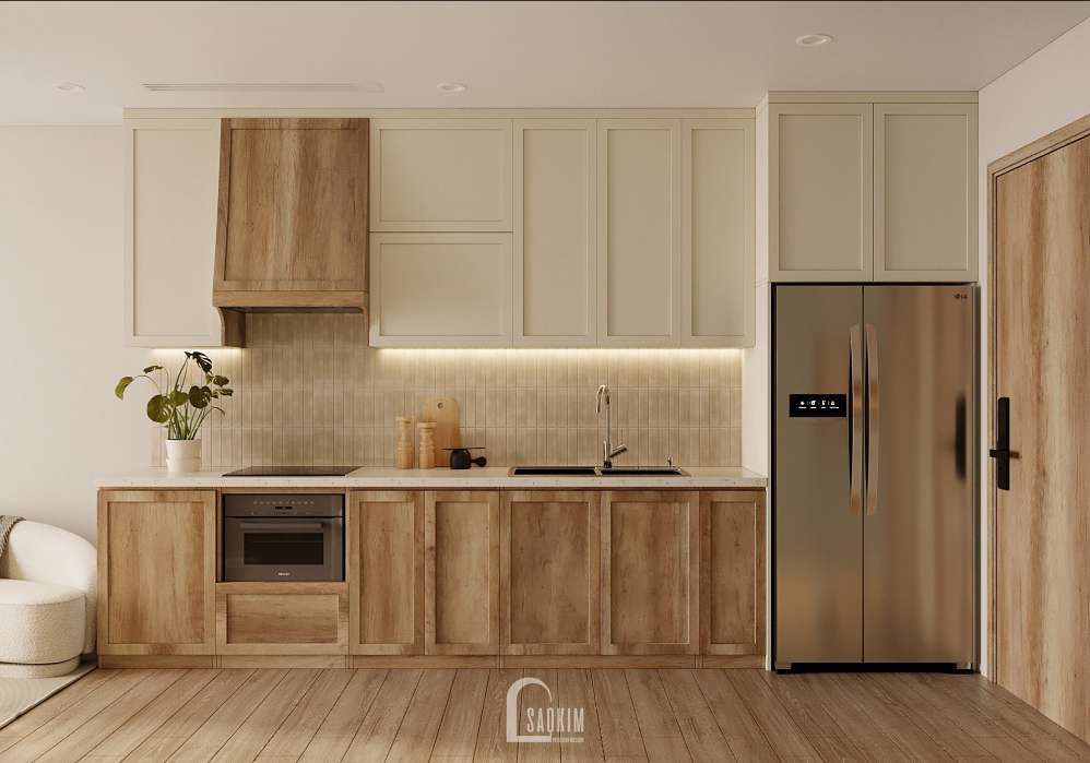 Thiết kế bếp ăn theo phong cách Wabi Sabi tập trung vào việc kết hợp giữa sự tiện nghi và vẻ đẹp tự nhiên từ những vật liệu gần gũi với con người.