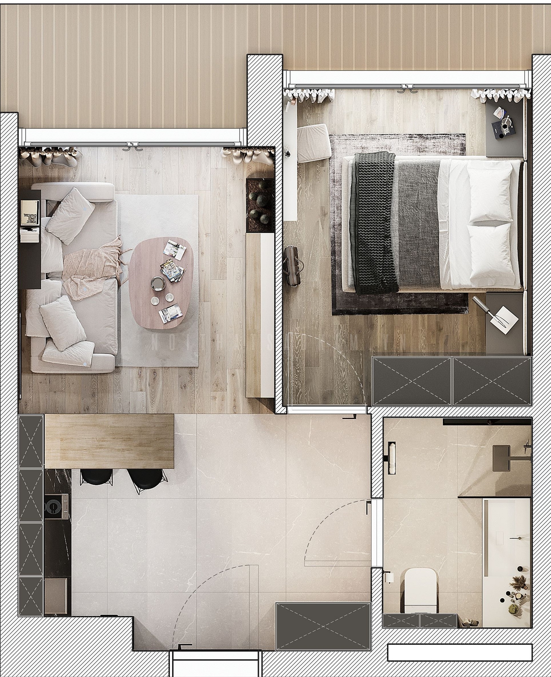 THIẾT KẾ NỘI THẤT CĂN HỘ CHUNG CƯ THE TONKIN 43M2 PHONG CÁCH HIỆN ĐẠI