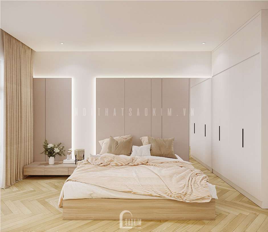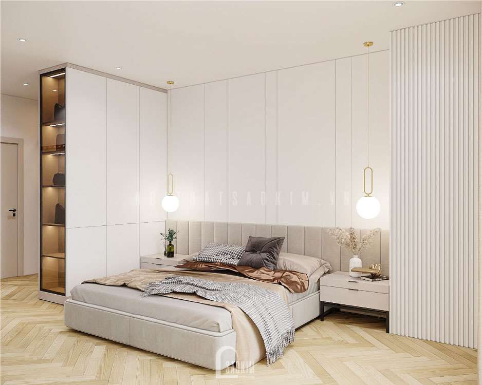 Thiết kế phòng ngủ với màu sắc nhẹ nhàng, đơn giản