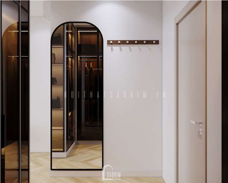 Bố trí gương treo tường ở khu vực sảnh đi lại tạo nên không gian hoàn mỹ.