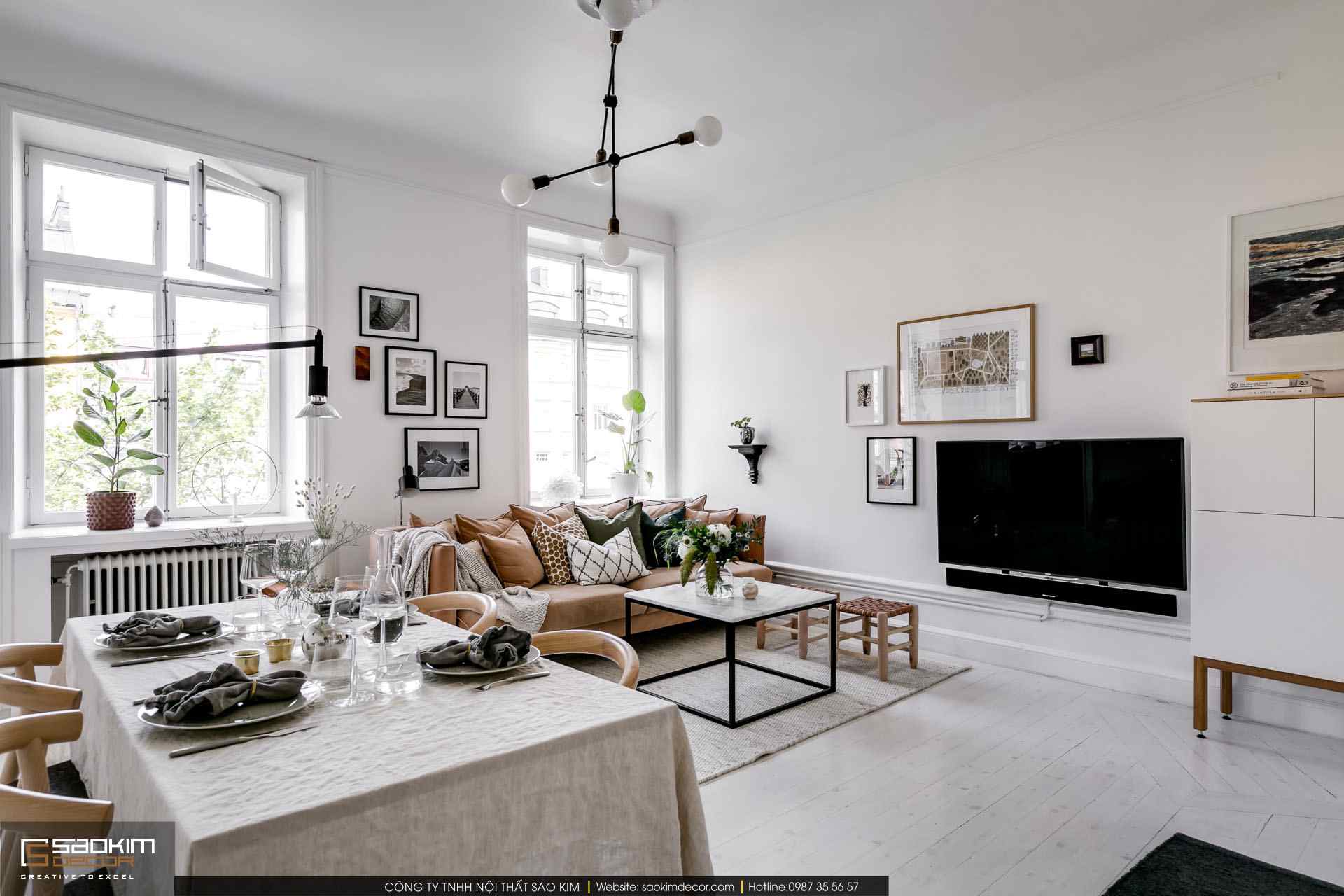 Thi công nội thất chung cư tuyệt đẹp với mặt bằng hoàn hảo. Thiết kế nội thất chung cư scandinavian cho căn hộ mang đến không gian sống hoàn hảo, tận dụng tối đa ánh sáng thiên nhiên. Thiết kế chung cư mang lại vẻ đẹp thanh lịch nhờ các phần cửa sổ cao với hốc sâu, sàn gỗ thông và các tầng cao.