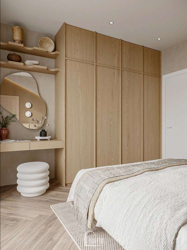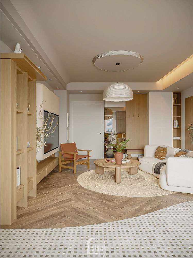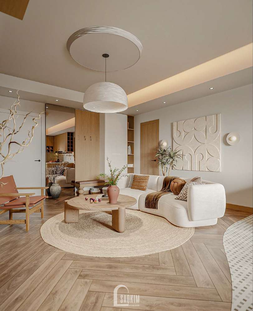 Sự mộc mạc từ đồ nội thất đến màu sắc nhẹ nhàng trong thiết kế chung cư phong cách Japandi.