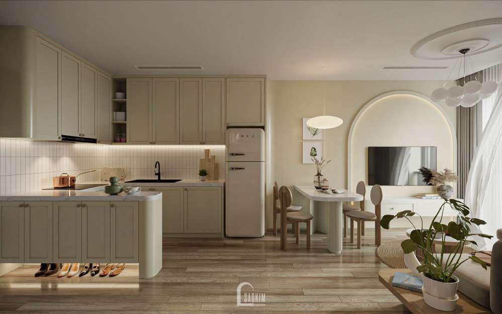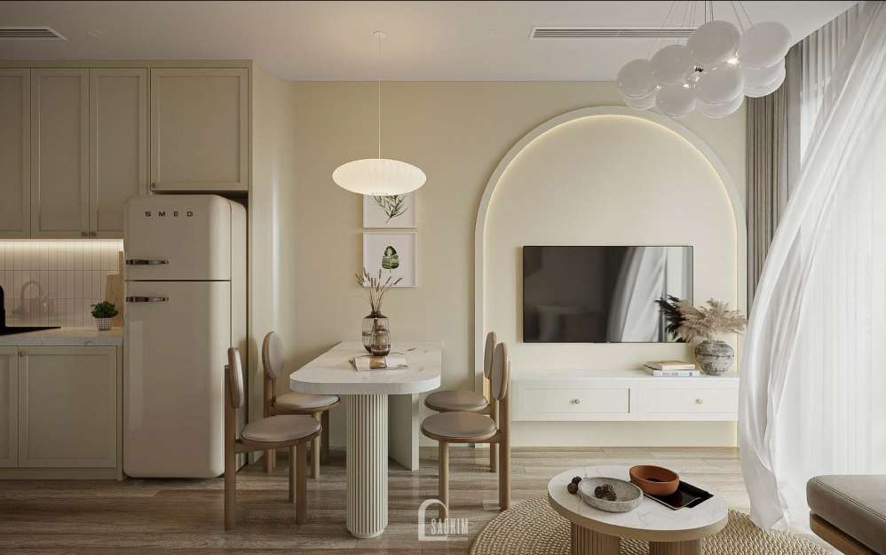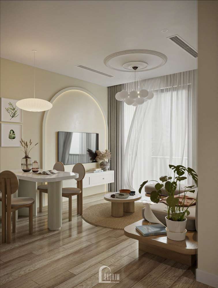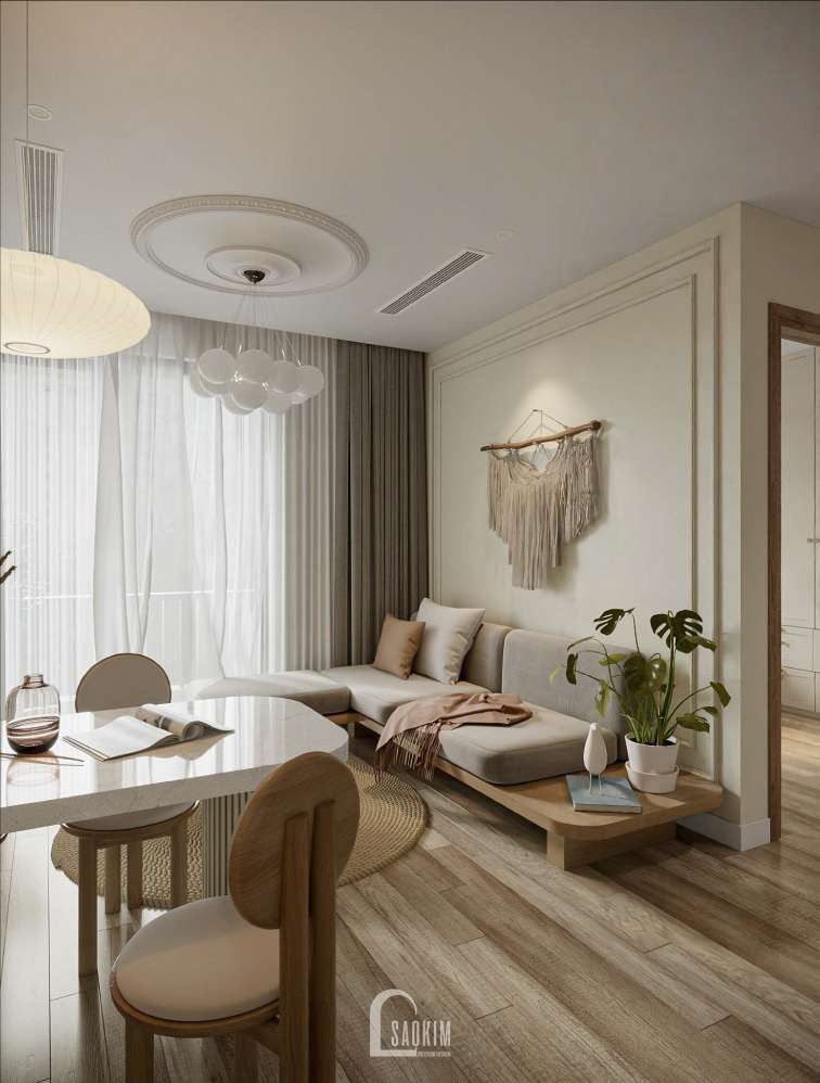 Thiết kế nội thất chung cư thông thoáng, tối giản và sáng sủa là điểm nhấn của phong cách này, tạo điều kiện tốt cho sự lưu thông của ánh sáng tự nhiên và không gian mở.