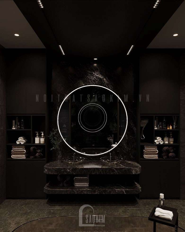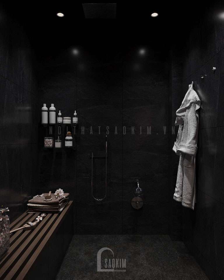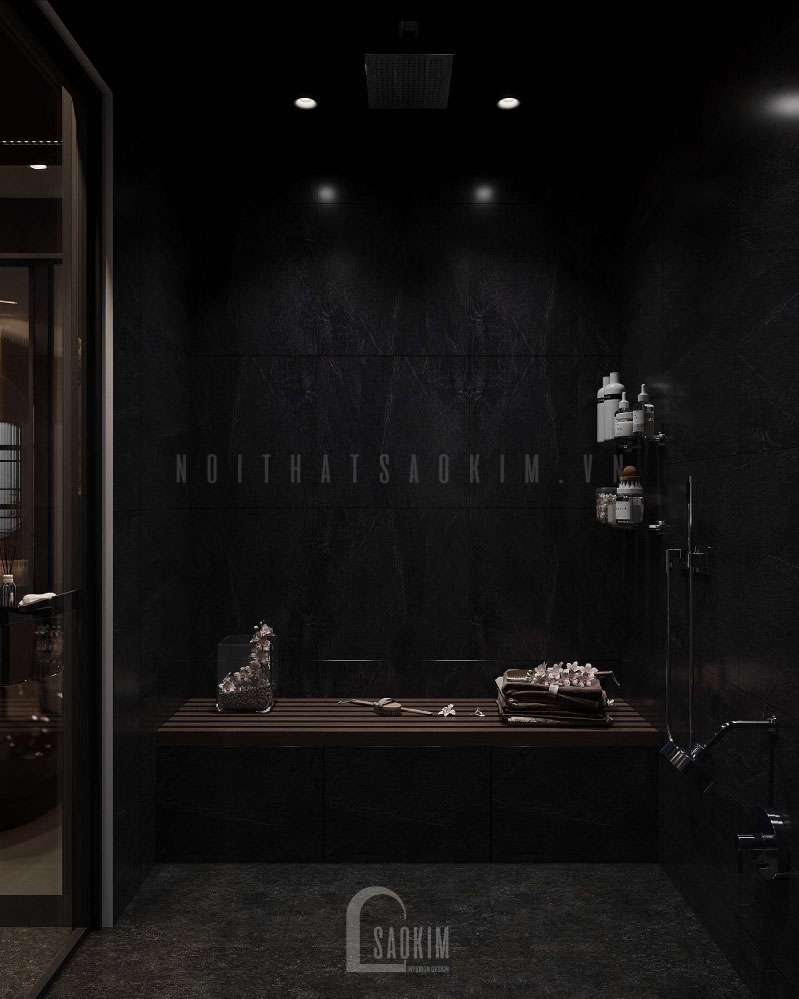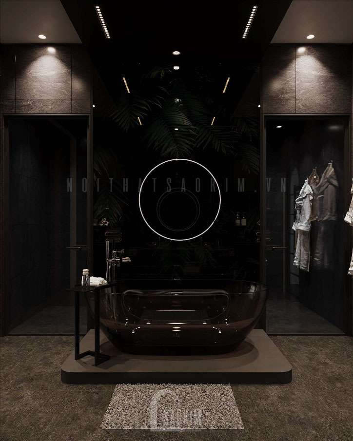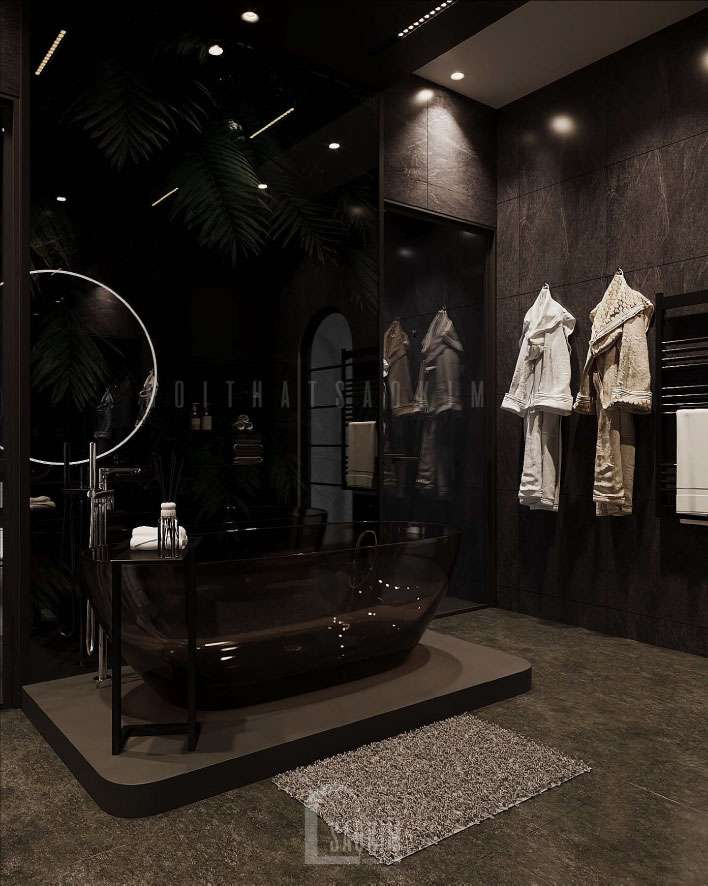 Thiết kế phòng tắm với gam tối tạo nên sự huyền bí cho không gian