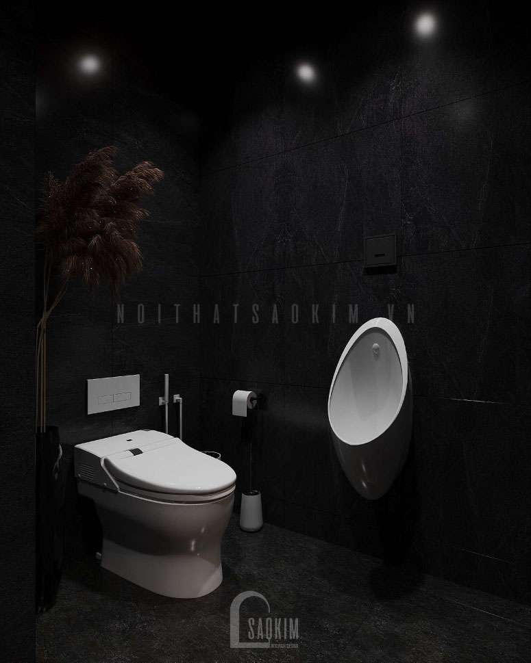 Thiết kế phòng tắm có khu vực phòng tắm, có bồn cầu và bồn tiểu nam tạo nên sự thuận tiện trong việc sử dụng cũng như sinh hoạt.