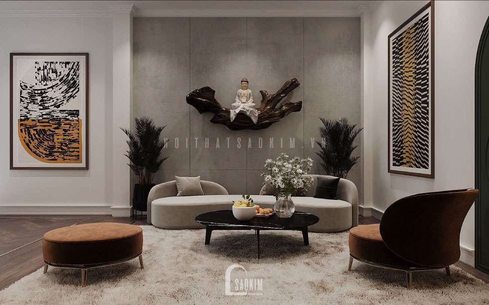 Bố trí đồ nội thất đẹp, tiện nghi cho phòng khách thiết kế nội thất nhà liền kề