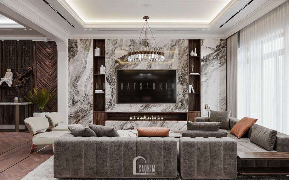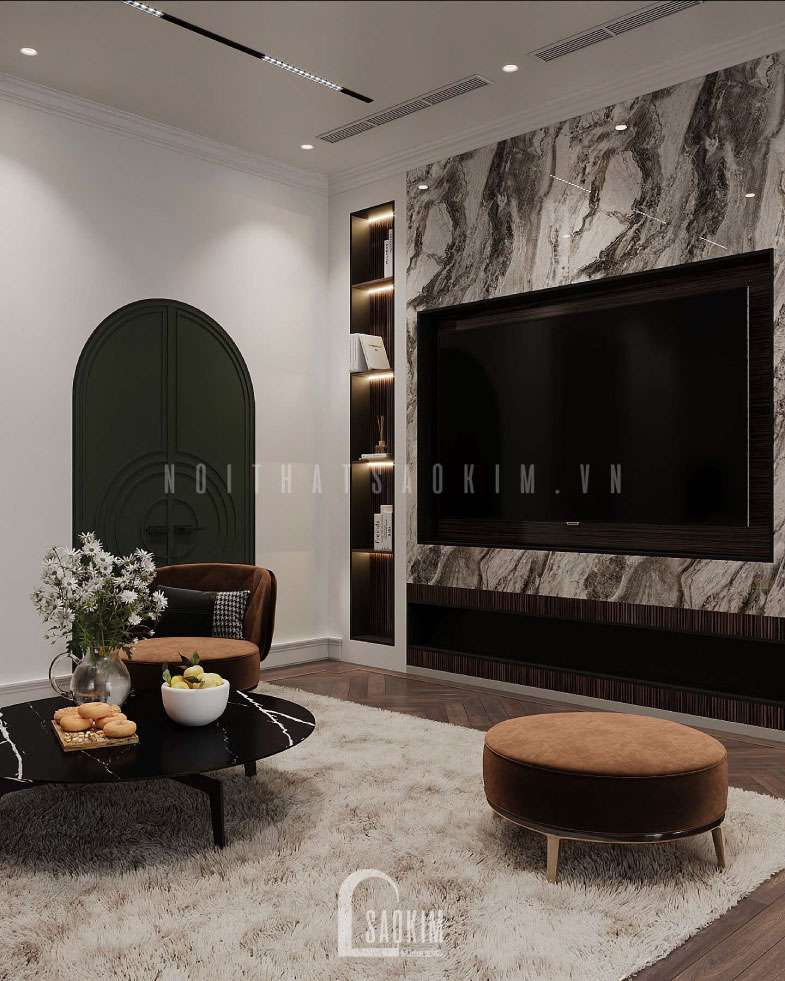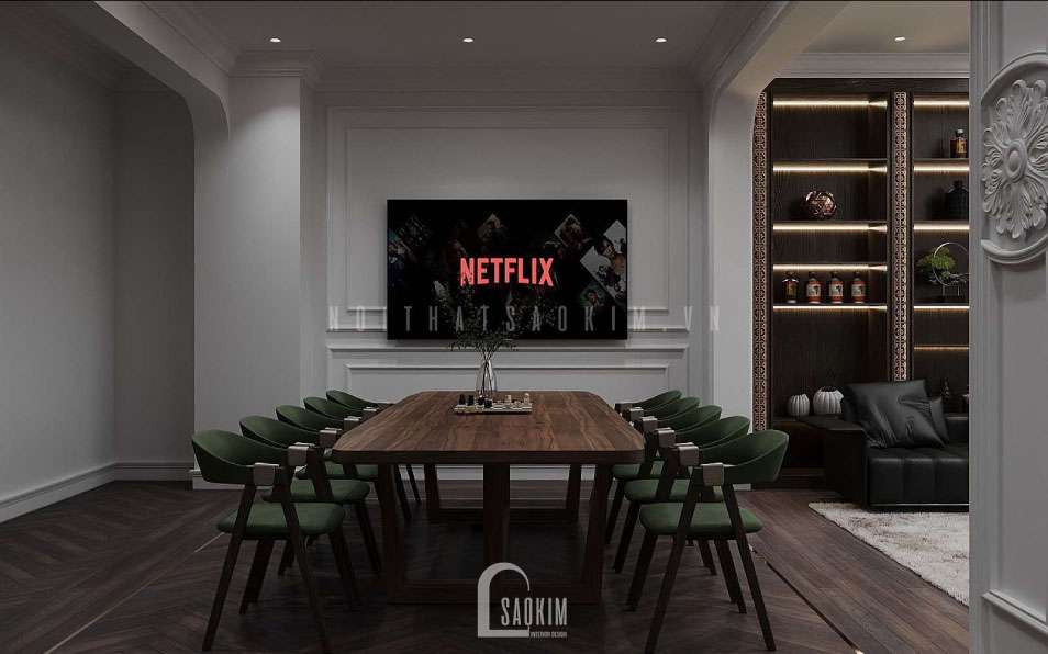 Thiết kế đập thông 2 căn liền kề Louis City thể hiện được nét cá tính riêng biệt của chủ nhân, truyền tải trọn vẹn tinh thần của phong cách hiện đại, gây ấn tượng với màu sắc sang trọng, tinh tế cùng công năng tiện nghi. Việc kết hợp gam màu sáng tối cùng sự phong phú của vật liệu chính là yếu tố quyết định nét sang trọng cho không gian thiết kế nội thất nhà liền kề hiện đại. Vì thế, Nội Thất Sao Kim đưa ra giải pháp tối ưu nhất từ công năng đến tài chính cho gia chủ. Cùng tìm hiểu về cách thiết kế nhà liền kề đẹp và tiện nghi này nhé.