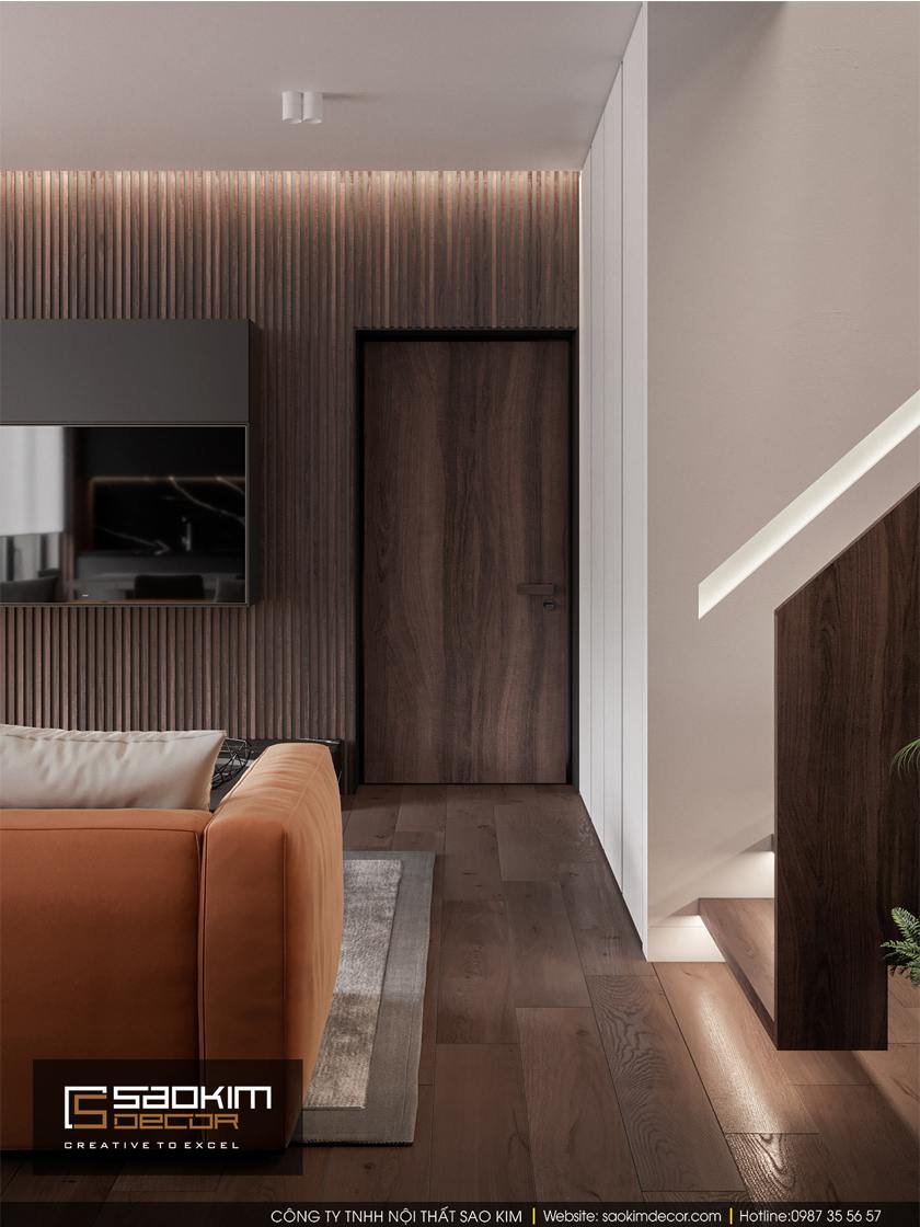 Thiết kế nội thất nhà phố theo phong cách hiện đại là lựa chọn của gia chủ căn hộ. Thiết kế nội thất là kết hợp hài hòa giữa các tone màu trắng, xám và gỗ. Qua đó mang lại mẫu thiết kế nhà ở ấm áp, sang trọng hơn bao giờ hết. Các gam màu chủ đạo được sử dụng xuyên suốt trong mỗi không gian thiết kế.