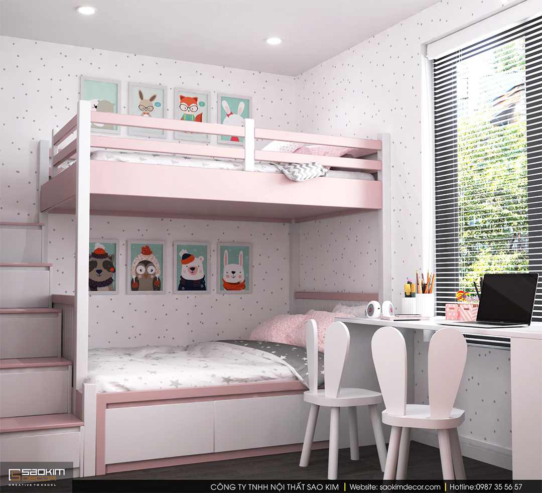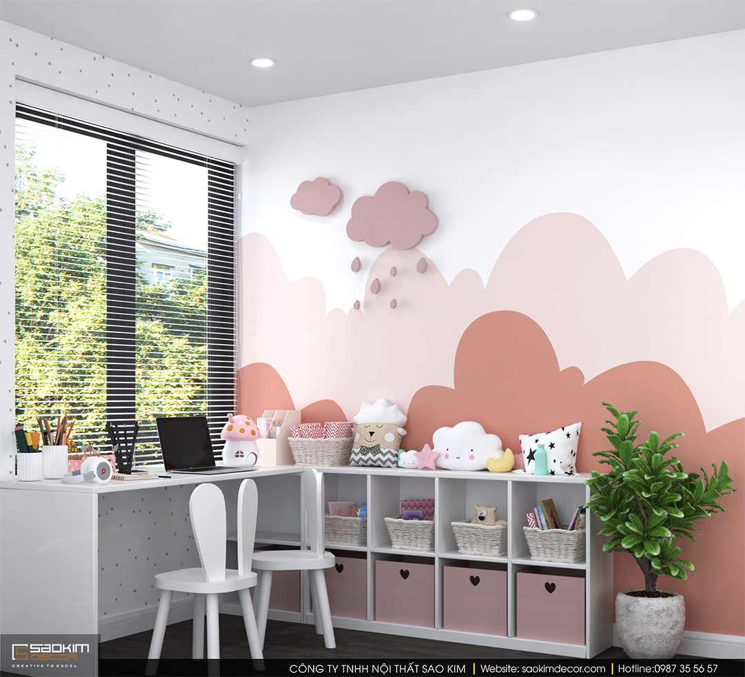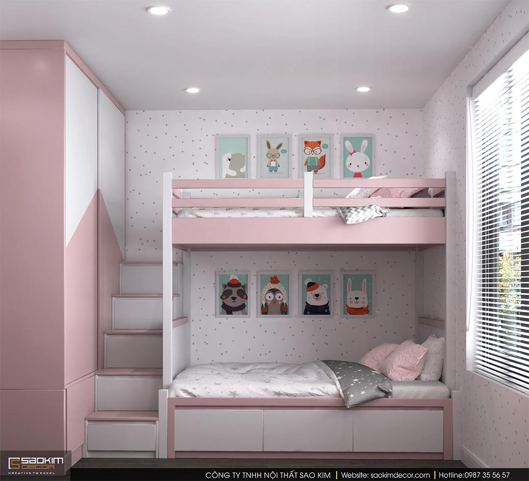 Thiết kế phòng ngủ bé gái chung cư Sky Central