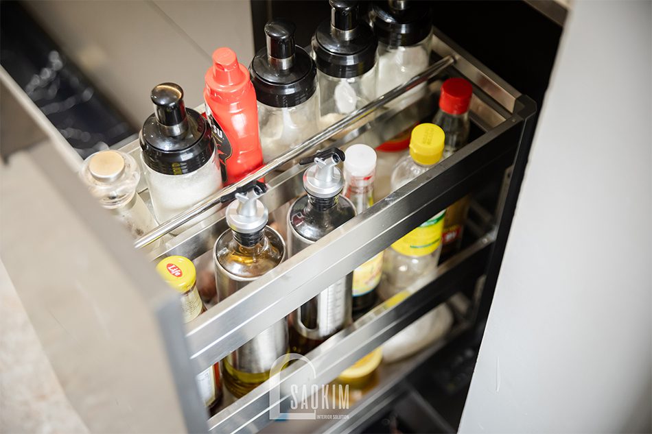 Giá đựng gia vị chia thành các ngăn tối ưu công năng sử dụng.