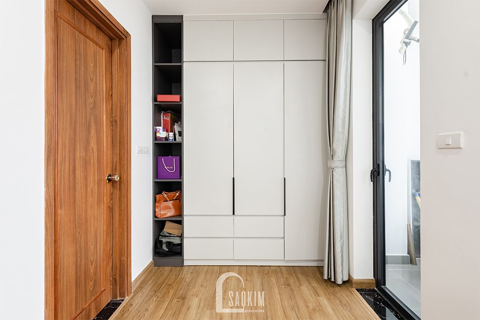 Tủ quần áo kịch trần được bố trí gọn gàng.