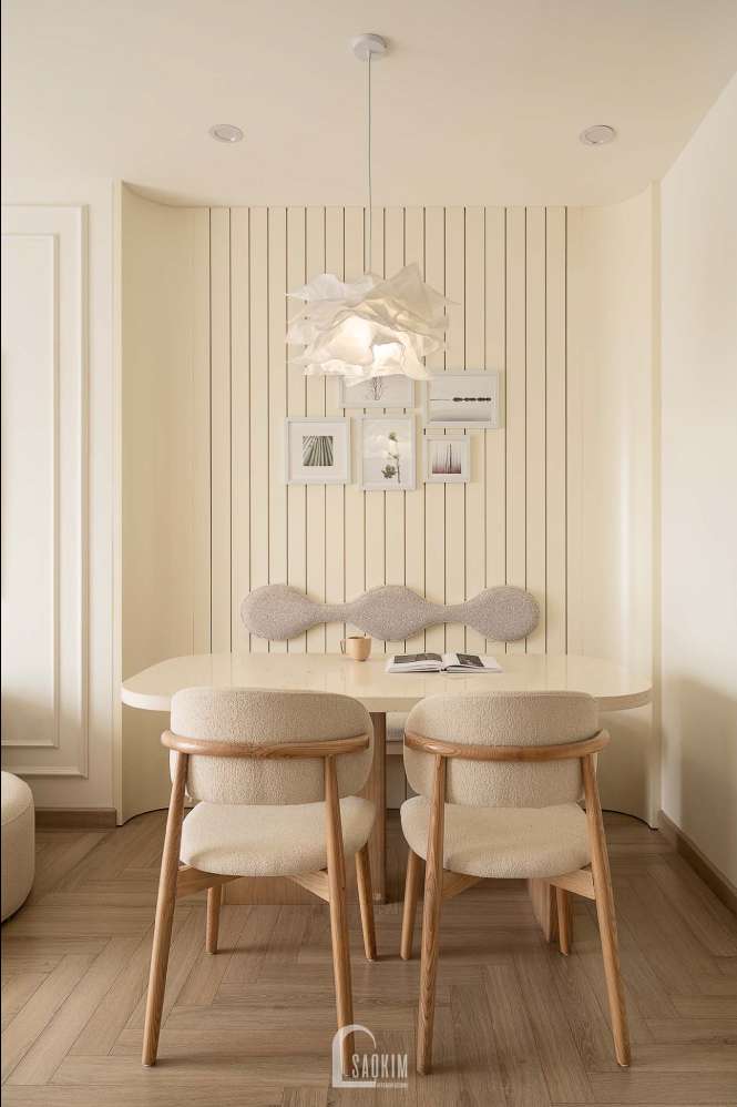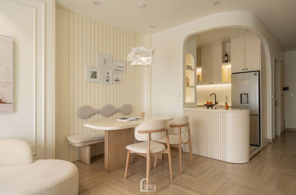 Sự kết hợp hoàn hảo giữa tính thẩm mỹ và công năng sử dụng trong thi công nội thất căn hộ phong cách Korea Chic 83m2.