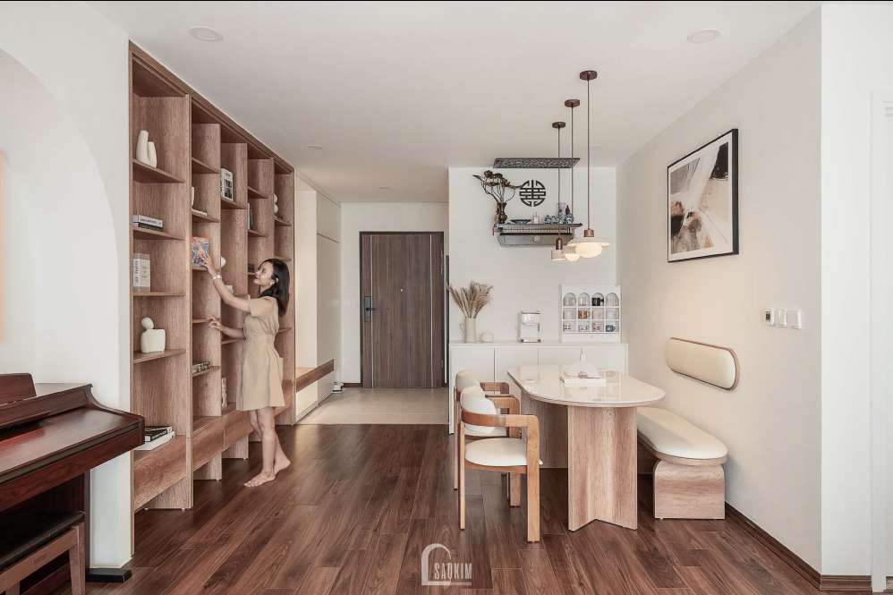 Thiết kế căn hộ chung cư được Sao Kim kết hợp hài hòa giữa các chi tiết, đường nét mộc mạc, đơn giản mà vẫn toát lên được vẻ đẹp sang trọng, lôi cuốn.